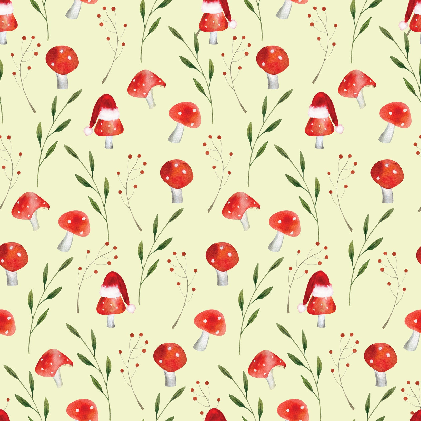 Mushrooms & Santa Hats - Wrapping Paper
