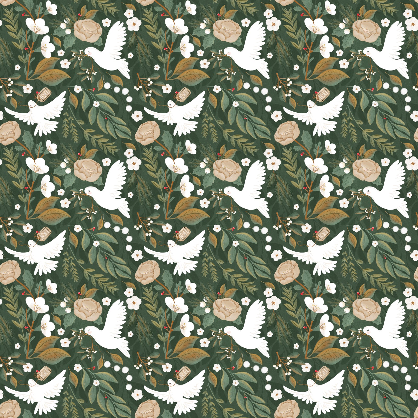 Christmas Doves in Green - Wrapping Paper from $15.00