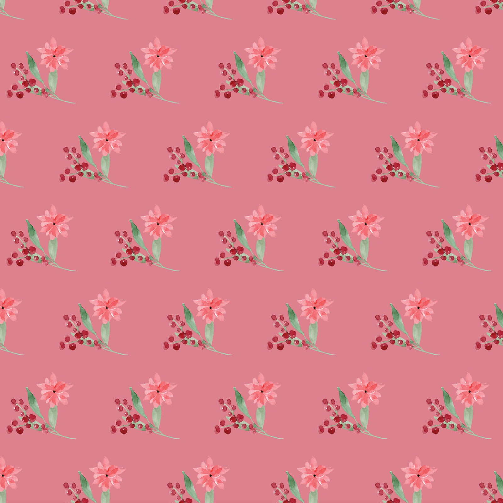 Pink wrapping paper with poinsettias and red berries