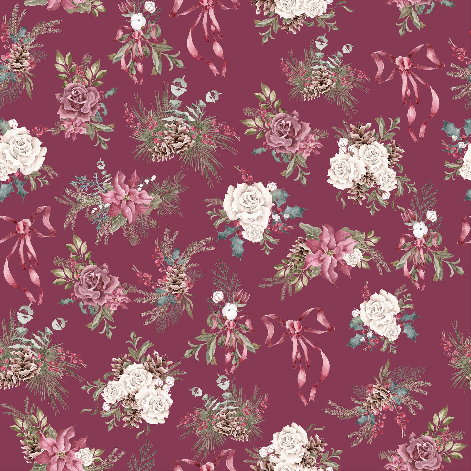 Holly Bouquet with Roses & Pine Cones - Wrapping Paper from $15.00
