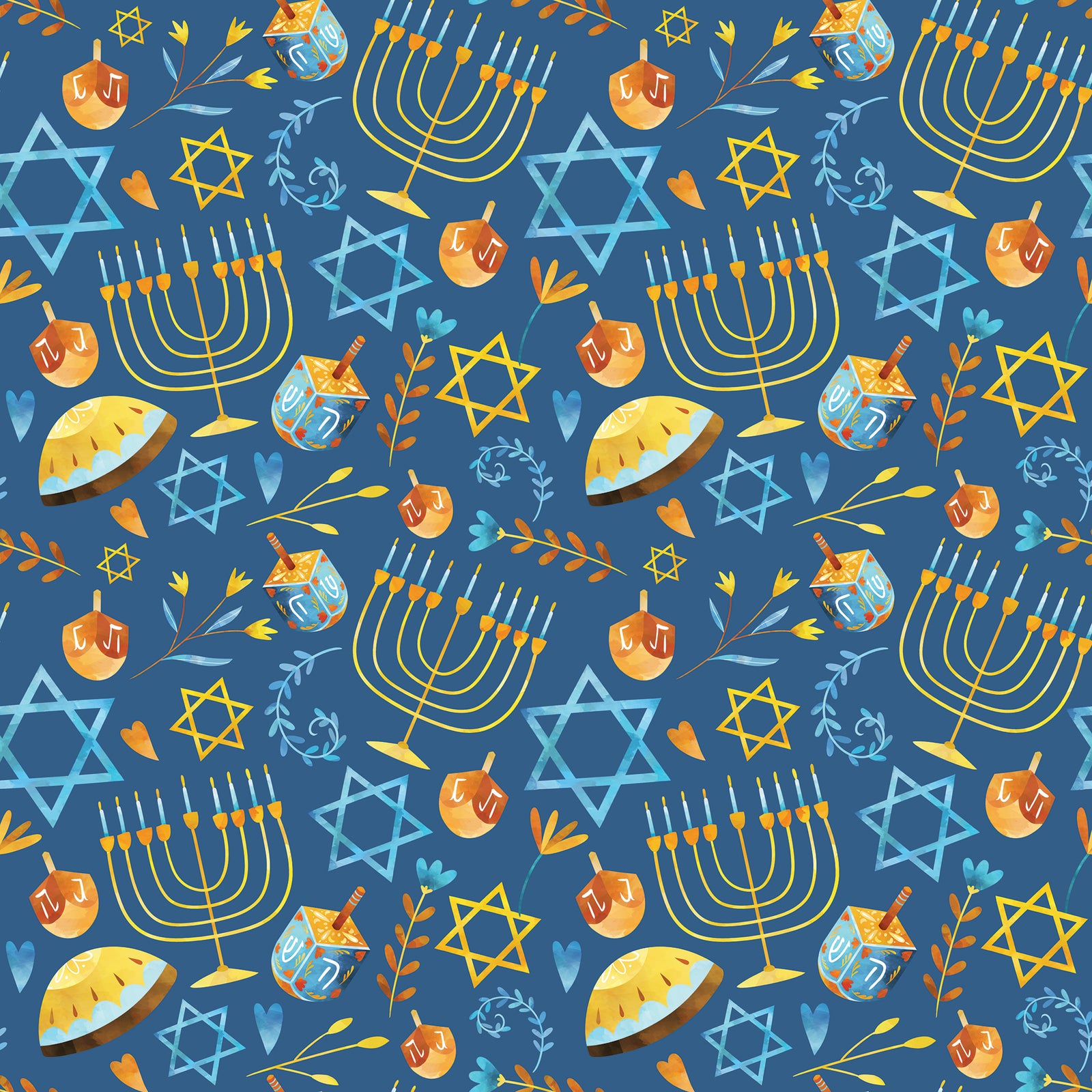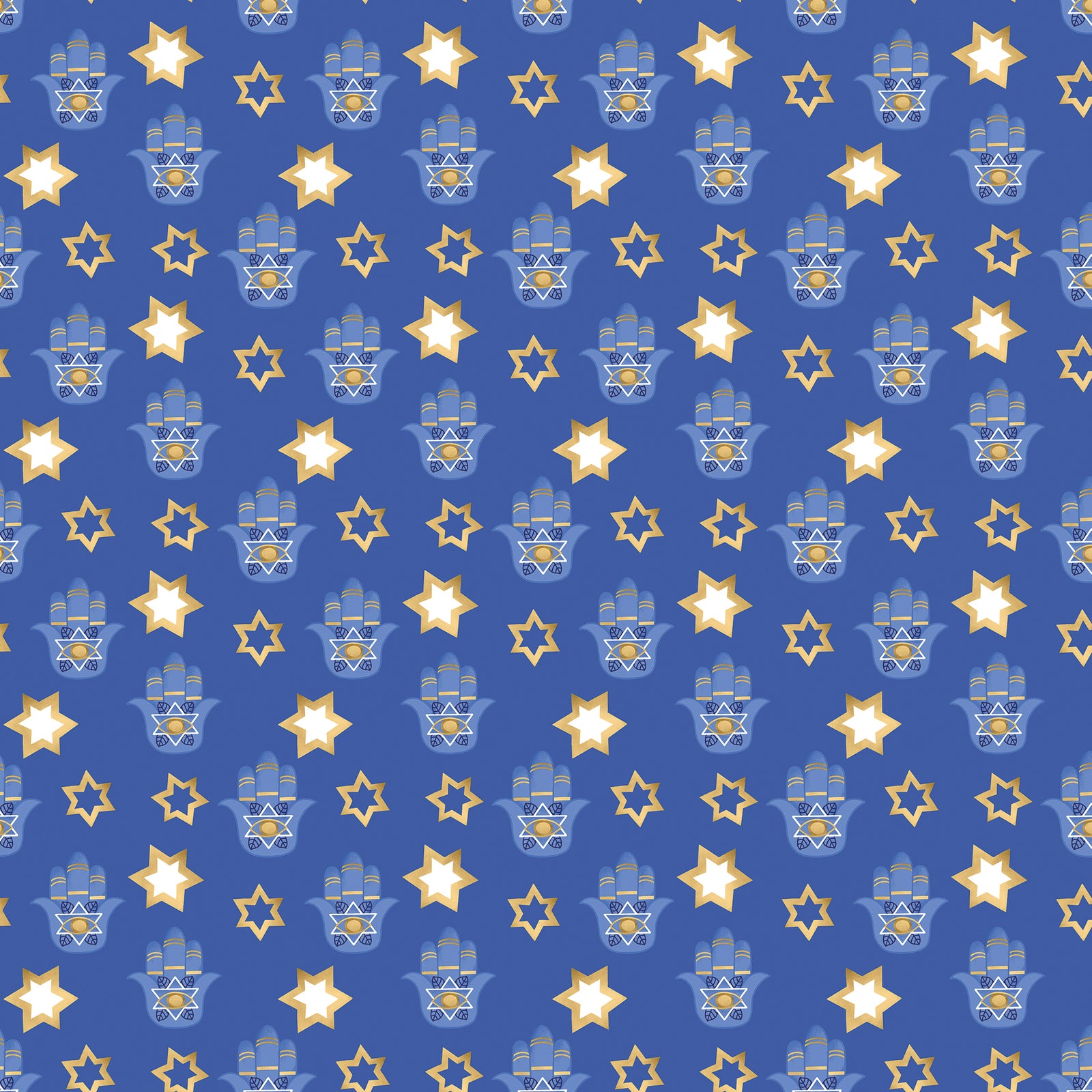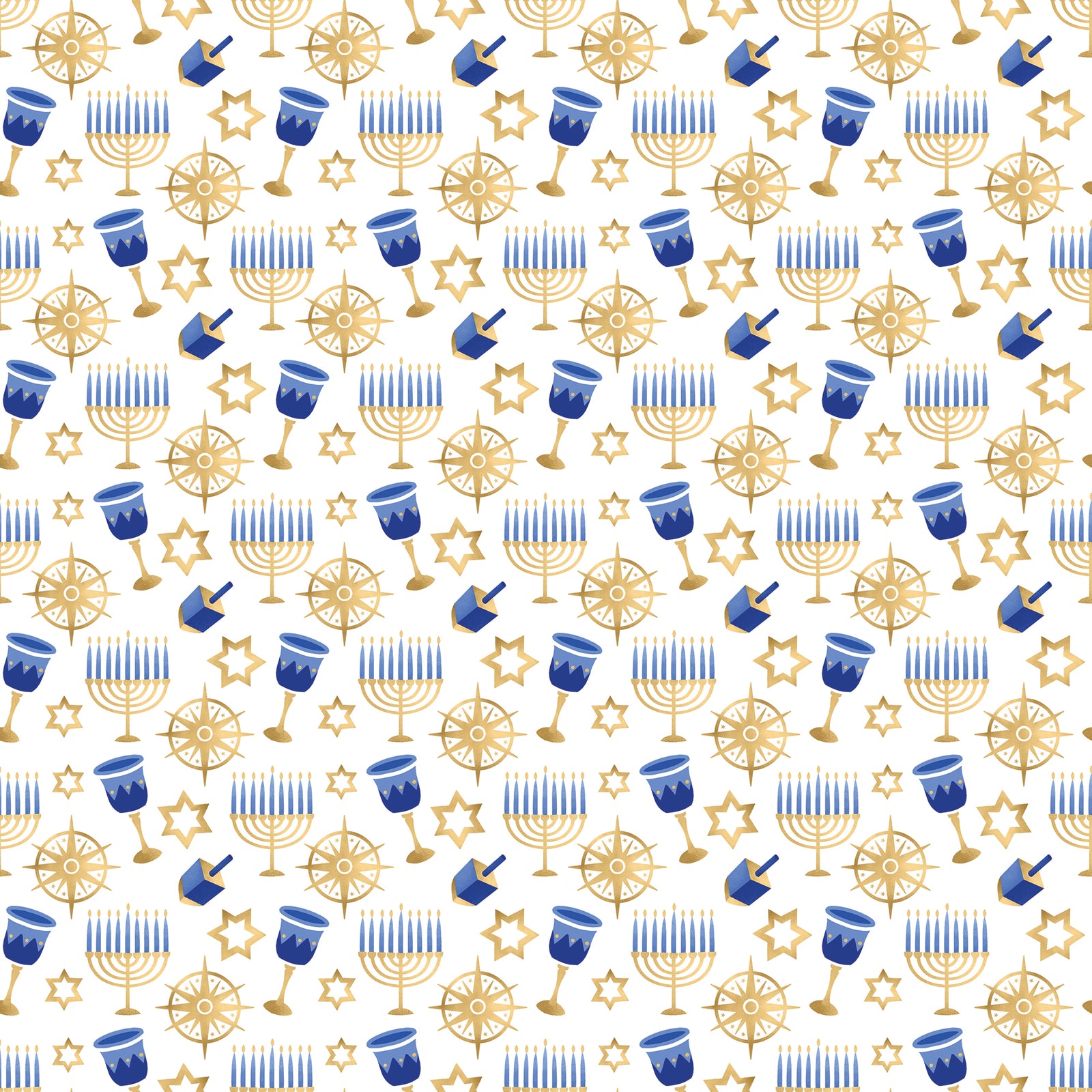 • Blue wrapping paper with Hanukkah branches in gold and white